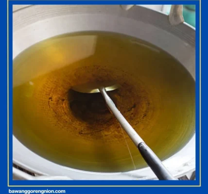 Tahap paling sensitif dalam proses mengolah bawang merah goreng adalah penggorengan. Setelah minyak memanas hingga mencapai suhu stabil, masukkan bawang secara bertahap.